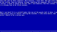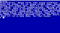 - July 09, 2025 by DimaLink#retro quest, #text file, #read story, #storyline, #frozen, #arctic, #cold, #monsters, #ms dos, #8 bit, #text scene, #text based, #text quest, #80s, #1980s, #retro computersSo story is finished already. Next, you will go along the frozen station already. Everywhere it is snow. It is wind blowing. Sometimes earthquake. And everything is destroyed. There is no roof. And bl... Continue reading