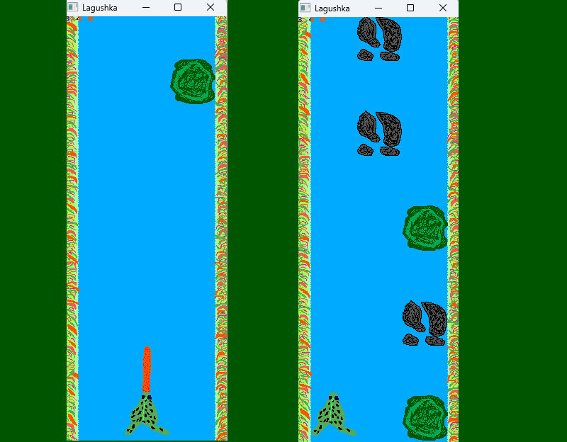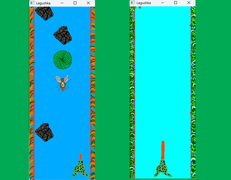 Lagushka (frog) – it is such a small green creature. It lives in a grass and likes water. So, this way, lots of us imagine frog. And this little game is exactly about most green creature in a world. About a frog. About a how frog swims in a water.