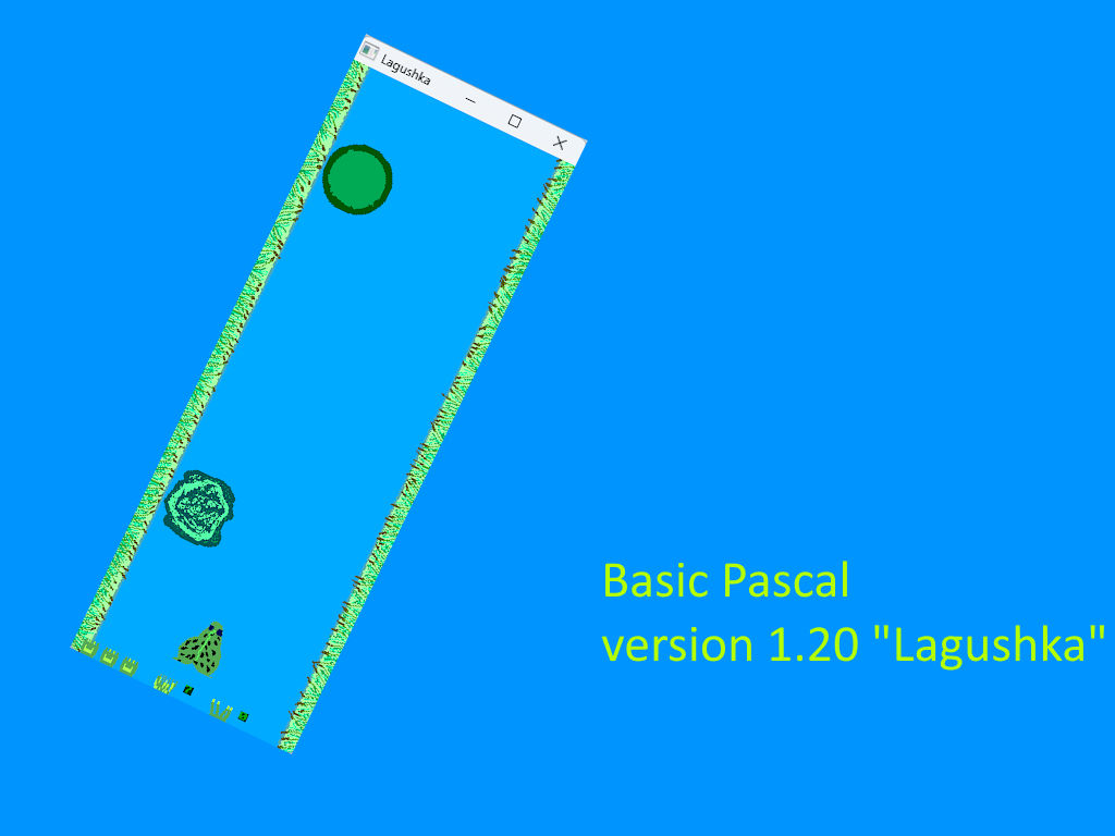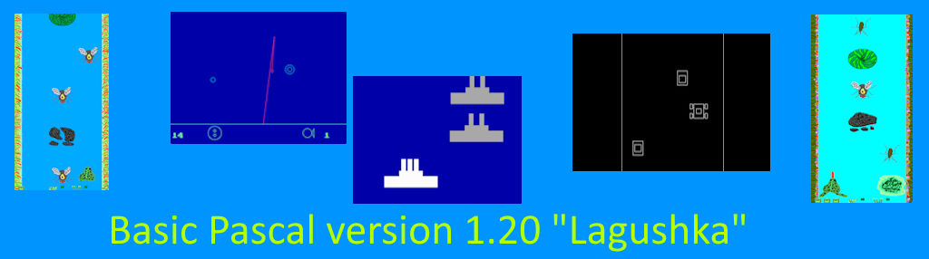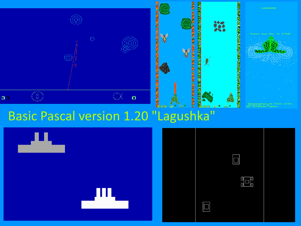 Basic Pascal version 1.20 "Lagushka" – most newest version. In this version there are 4 new games! Udochka, Parohod, Auto Car Stop, Lagushka. And even more retro games! It is a pack of retro games with modern versions of Basic and Pascal.