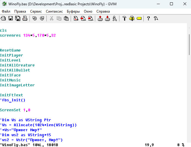 I'm continuing and finishing the thread with my own engine. It's for a game in the Free Basic programming language, using various libraries to suit my needs. This includes MP3 audio, PNG graphics, and True Type fonts with Russian language support. This time, everything worked! I managed to get past the cycle of problems. And everything works! Hurray! I'm so happy!